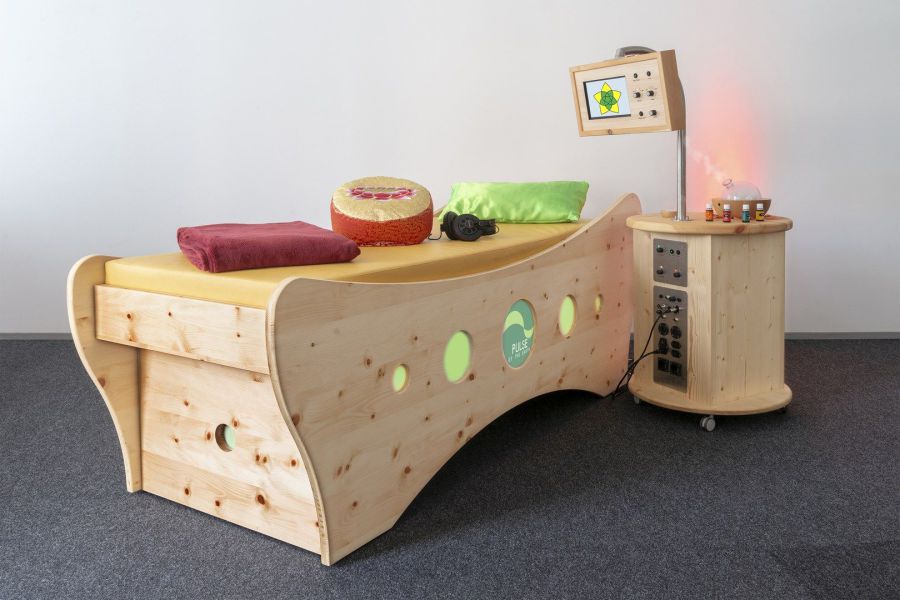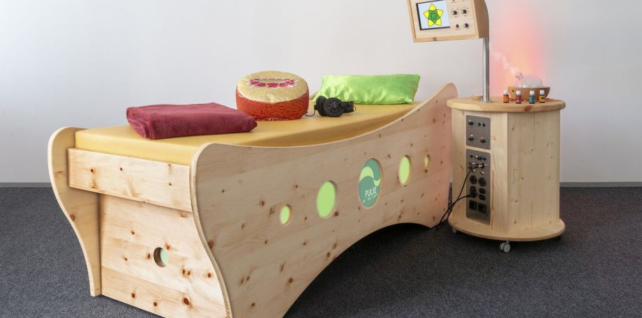 Die Anwendung des Klangbettes wirkt mittels Schallwellenmassage harmonisierend und verbessert Ihr Wohlbefinden durch: